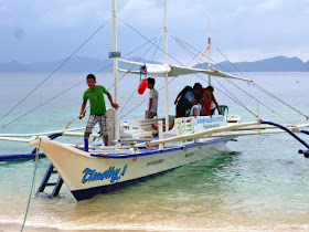 The tide was low and all of us were asked to stand on the boat's bow to avoid letting the rudder scrape the seafloor as we entered the lagoon. It was indeed big. We decided to forgo dipping in the lagoon and only went around the big lagoon in our boat. Again we stood on the boat's bow as we exited the lagoon... we did the job — we scraped the bow and not the rudder. :-D
